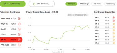 Aquí podemos obtener la cotización del precio de la electricidad indicado en €/MwH, es decir, el precio que se obtendría cada 1.000kwh.