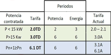En las tarifas 3.0TD, pasamos a tener 6 períodos de facturación (P1,P2,P3,P4,P5 y P6).